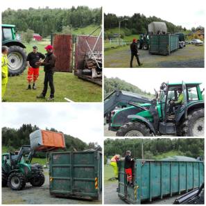 1 tonn med gammelt ræl ble fjernet fra fotballbaneområdet sist tirsdag. Da stilte Christian Reitan fra firmaet Hovstein opp med en 30kubikk-container. 200 meter gjerde, et toalett, to leskur, spraybokser og en haug med paller og annet rask ble fjernet fra området rundt «plassen».