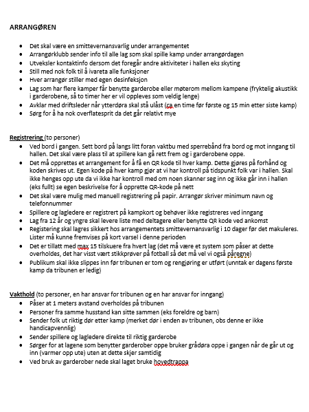 Smittevern i Horghallen under kamp