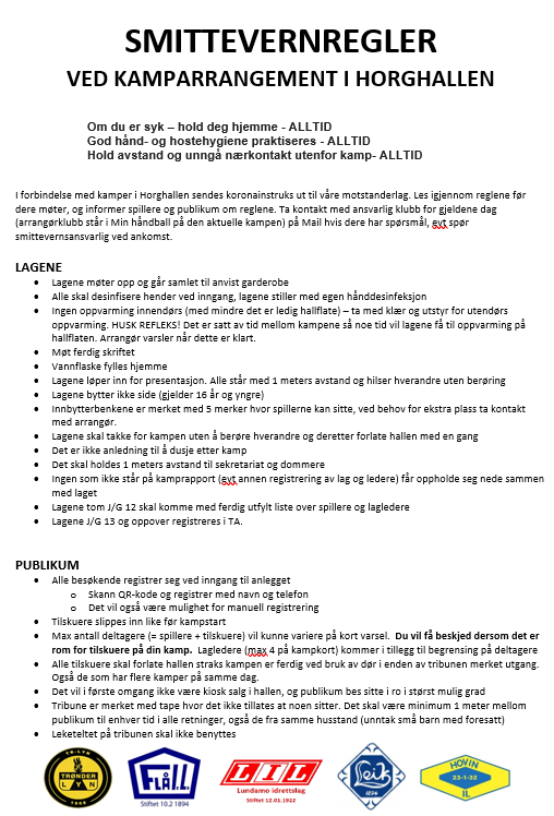 Smittevern ved kamp i Horghallen- oppdatert 18.11.20